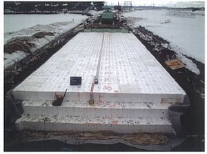 EDO-EPS工法とは大型の発泡スチロール(EDO-EPS)ブロックを盛土材料として積み重ねていくもので、材料の軽量性、耐圧縮性、耐水性および積み重ねた場合の自立性等の特性を利用する工法です。