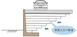 擁壁や橋台の埋め戻しにEDO-EPSブロックを併用することで土圧を軽減し、構造物をコンパクトにすることができます。