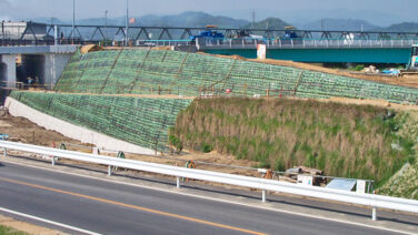 山守矢送林道場所:鳥取県倉吉市工法:土のう巻き込み工法施工:2009年