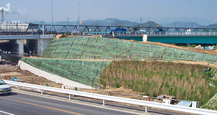 宮下十六本松線場所:鳥取県鳥取市工法:土のう巻き込み工法施工:2003年