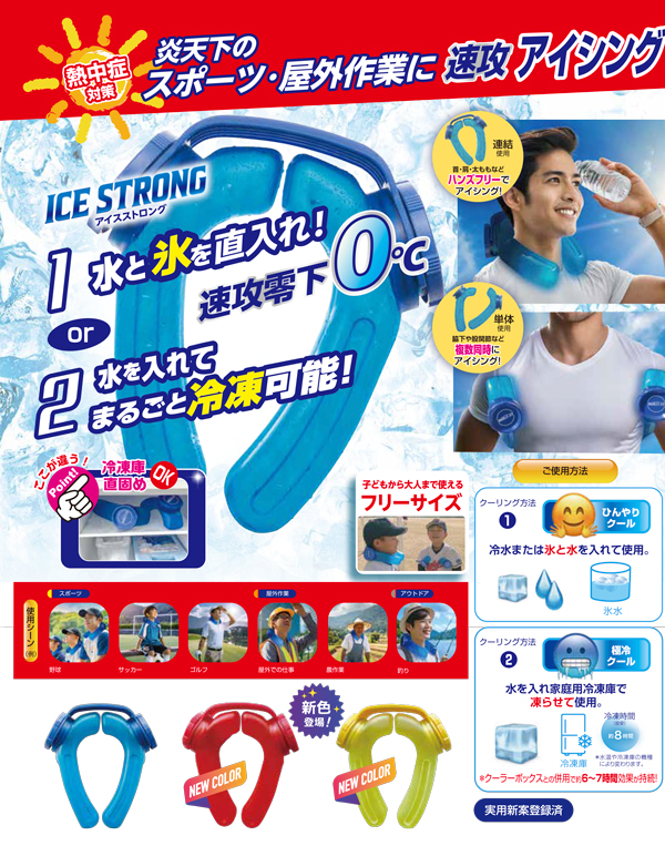 氷水を容器に入れ、連結させて首筋を冷やします。